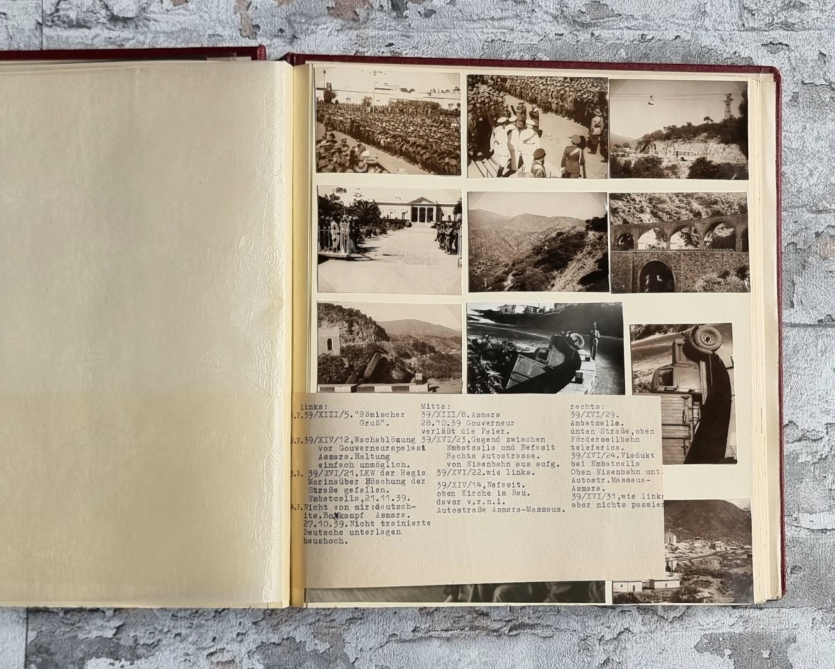 - Album 5 (1939–1940): 220 Fotografien. Italienisch-Ostafrika: Massaua, Koptenkloster Bizen (Eritrea), Mogadischu, Bengasi, Kabul; anschließend Rom.