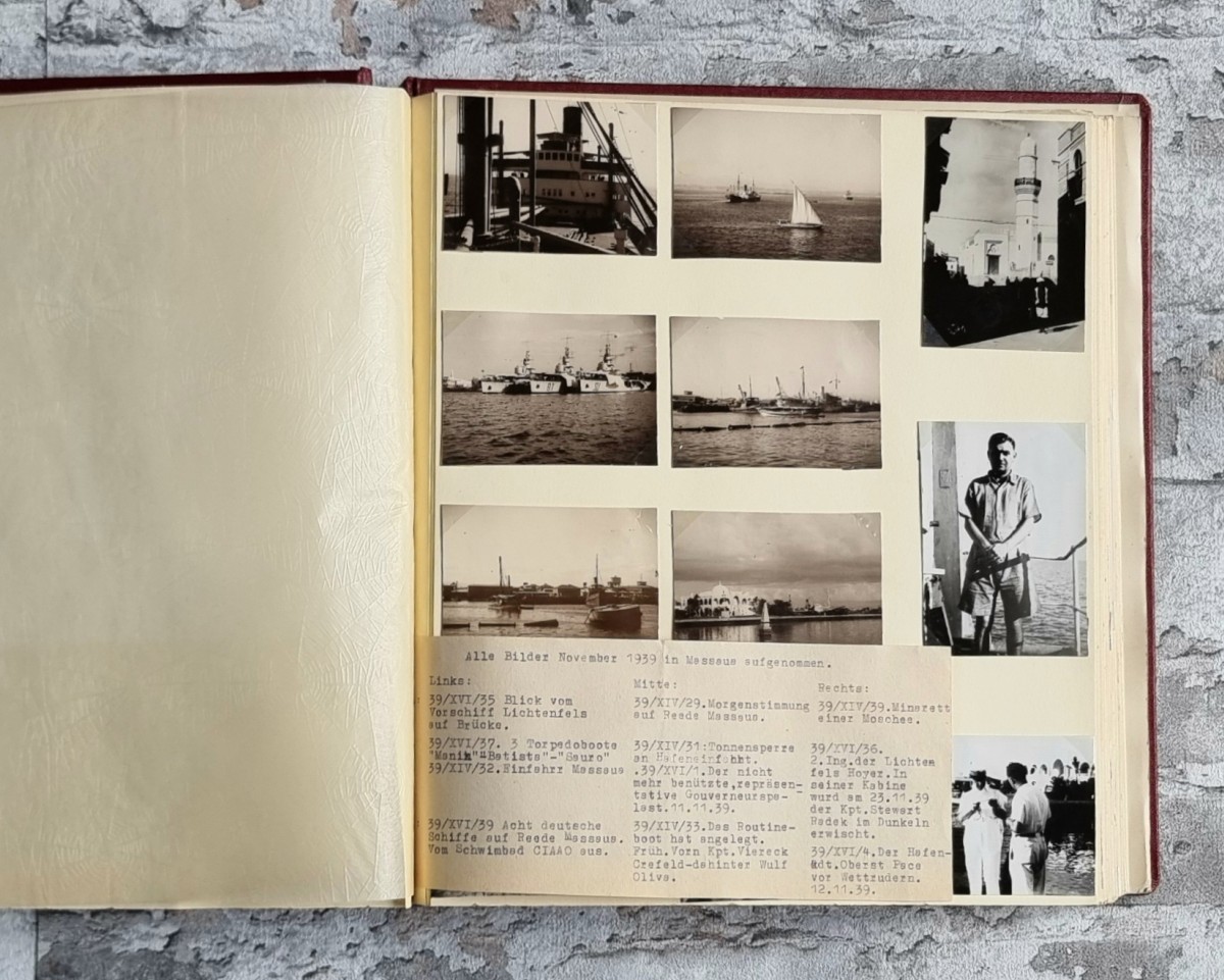 - Album 1 (1935–1937, teils 1941): 203 Fotografien (6 fehlen). Reise ab 1935 über Ceylon (Colombo, Dehiwala), Port Said, Cairo mit den Pyramiden von Gizeh, Sudan (1937), Marseille, Barcelona, Gibraltar, London (Armistice Day 1935). Ergänzend später: Baden-Baden, Oxford, Salzburg (Ostern 1941), Kraiburg, Neumarkt St. Veit.