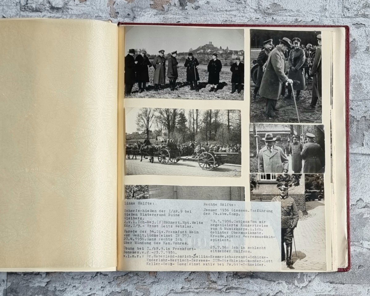 9 Fotoalben mit maschinenschriftlichen, aufklappbaren Legendenstreifen. 1935–1947.